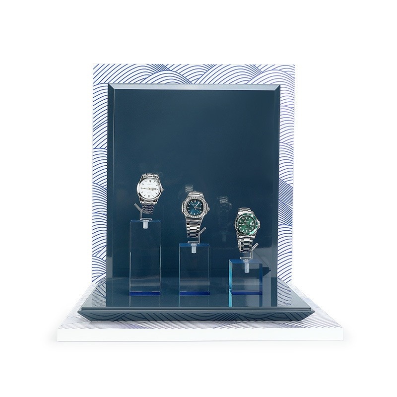 គ្រឿងអលង្កាអាគ្រីលីក បង្ហាញរោងចក្រ បង្ហាញនាឡិកាដ៏ប្រណិត ឈរពណ៌ជម្រាល
