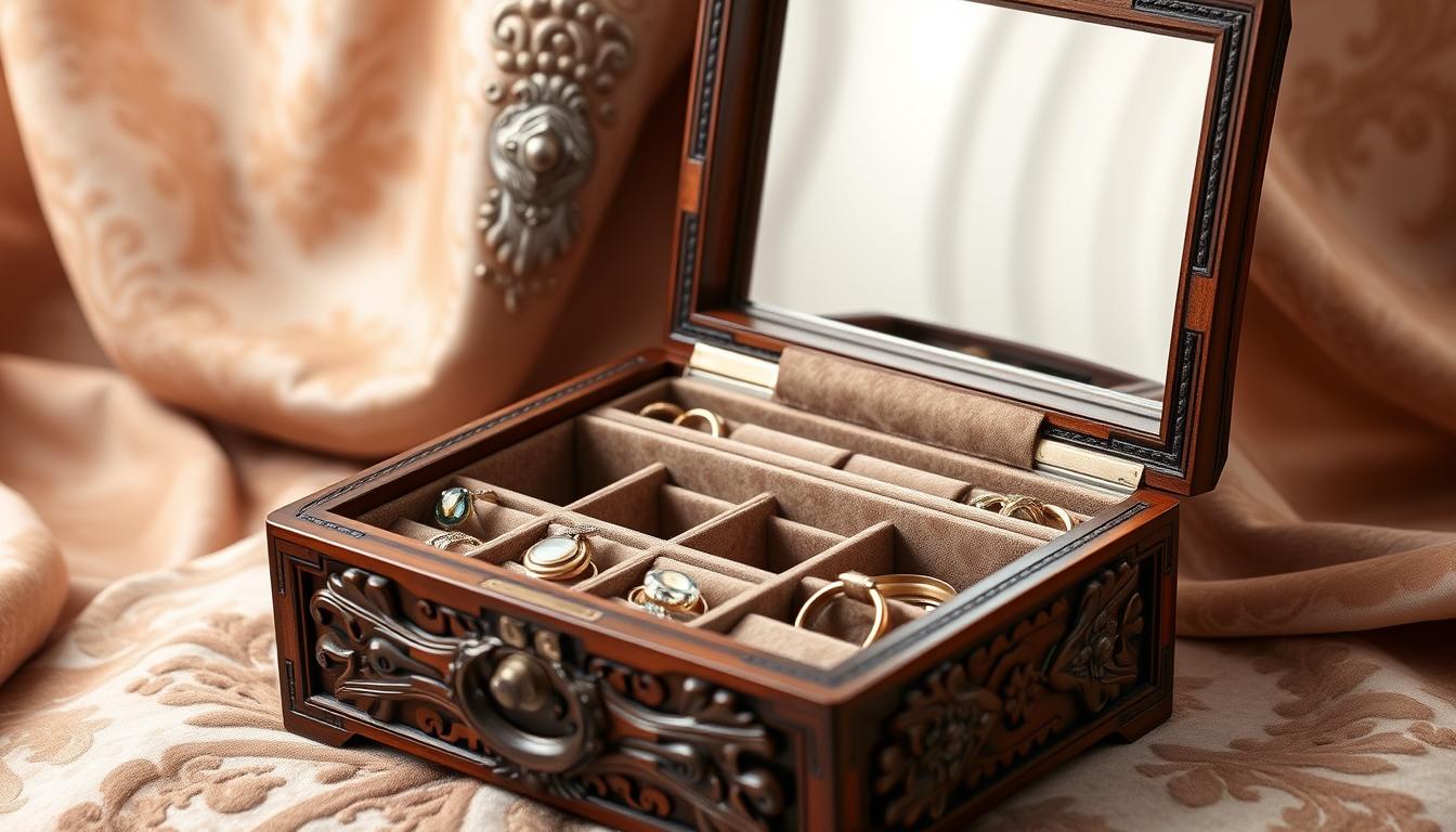 Think of a unique jewelry box as a keepsake holder. It’s perfect for keeping family heirlooms, love letters, or special concert tickets. These boxes turn ordinary items into cherished memories. They house stories worth passing down through generations.