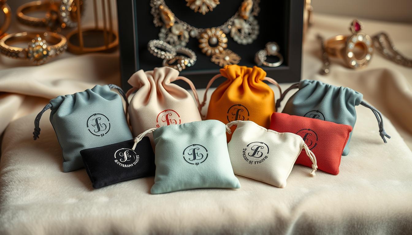 Explore the world of custom jewelry pouches that make your jewelry stand out. We use luxurious materials like suede and eco-friendly cotton. Each pouch shows off your brand’s unique style.