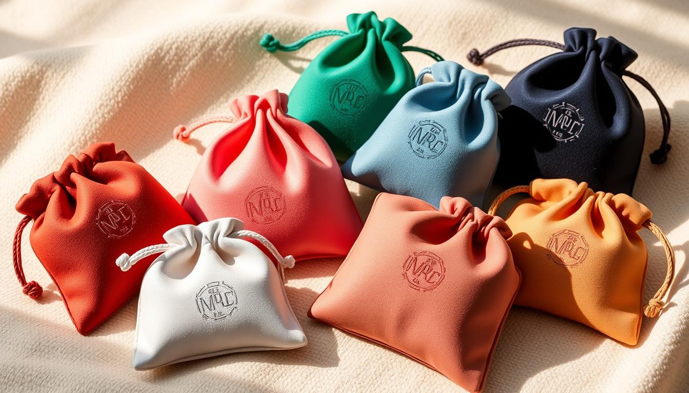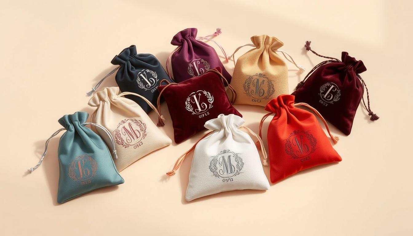 Choosing the right materials for your jewelry pouches is exciting. You can pick from linen, cotton, velour, leatherette, organza, satin, foil, and paper. Silk, velvet, cotton, leather, and satin are favorites for their elegance and durability.