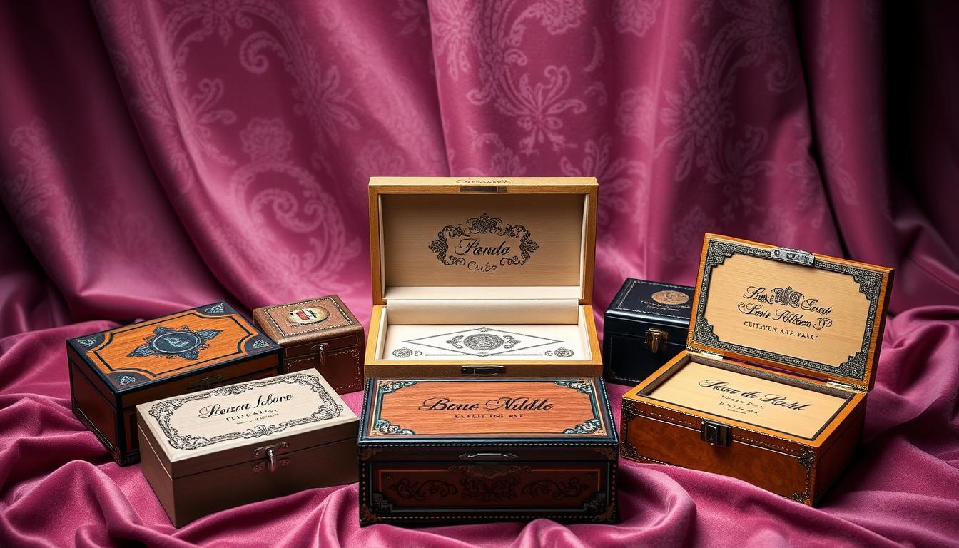 Choosing the right material for your custom jewelry box is key. It should look good and serve its purpose well. We offer both classic wooden and modern leather boxes. There are wooden ones in walnut and cherry and leather ones in beautiful colors. Each option has its own benefits, fitting every taste and need.